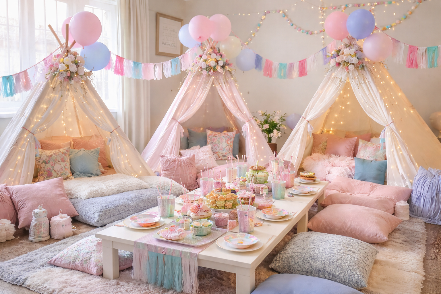 Create unforgettable sleepover experiences with our beautifully styled teepee setups. Each installation is thoughtfully themed and customized to reflect your vision — from soft luxury palettes to playful party concepts. We design cozy, immersive spaces that feel magical, elevated, and picture-perfect.